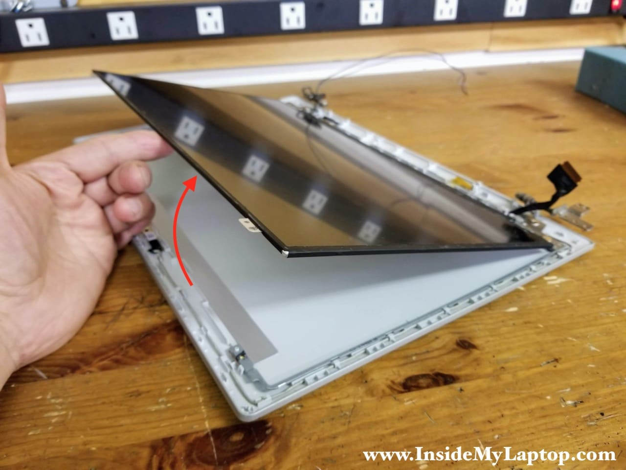 In order to remove and replace the LCD screen it’s necessary to separate the display panel from the laptop base assembly. Otherwise you will not be able to open up the display panel.