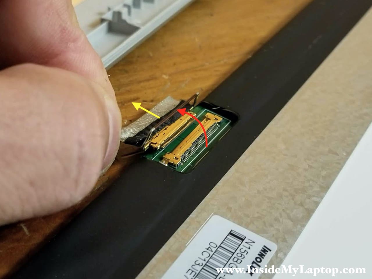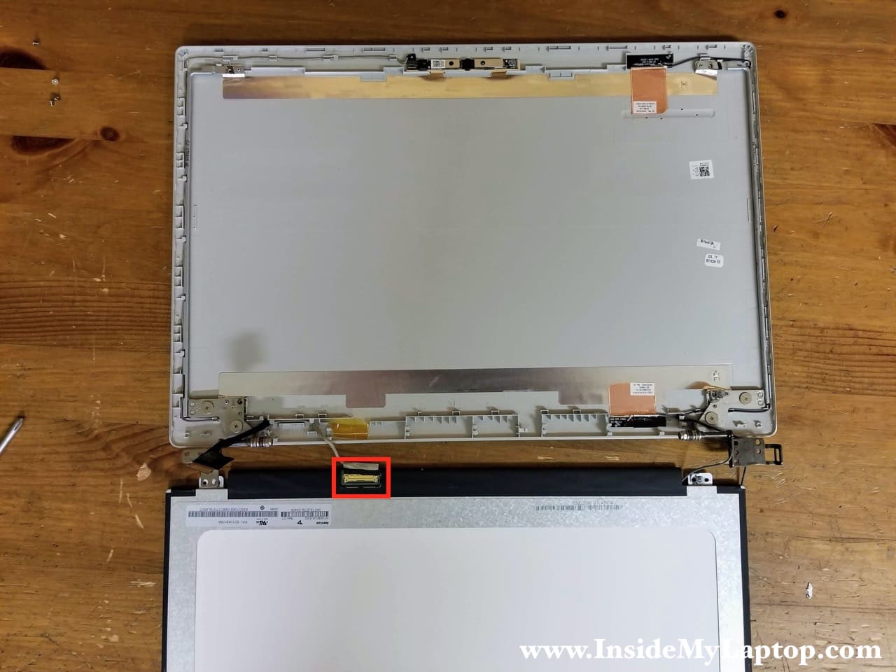 Now you can access the display cable connector and unplug the cable from the screen.