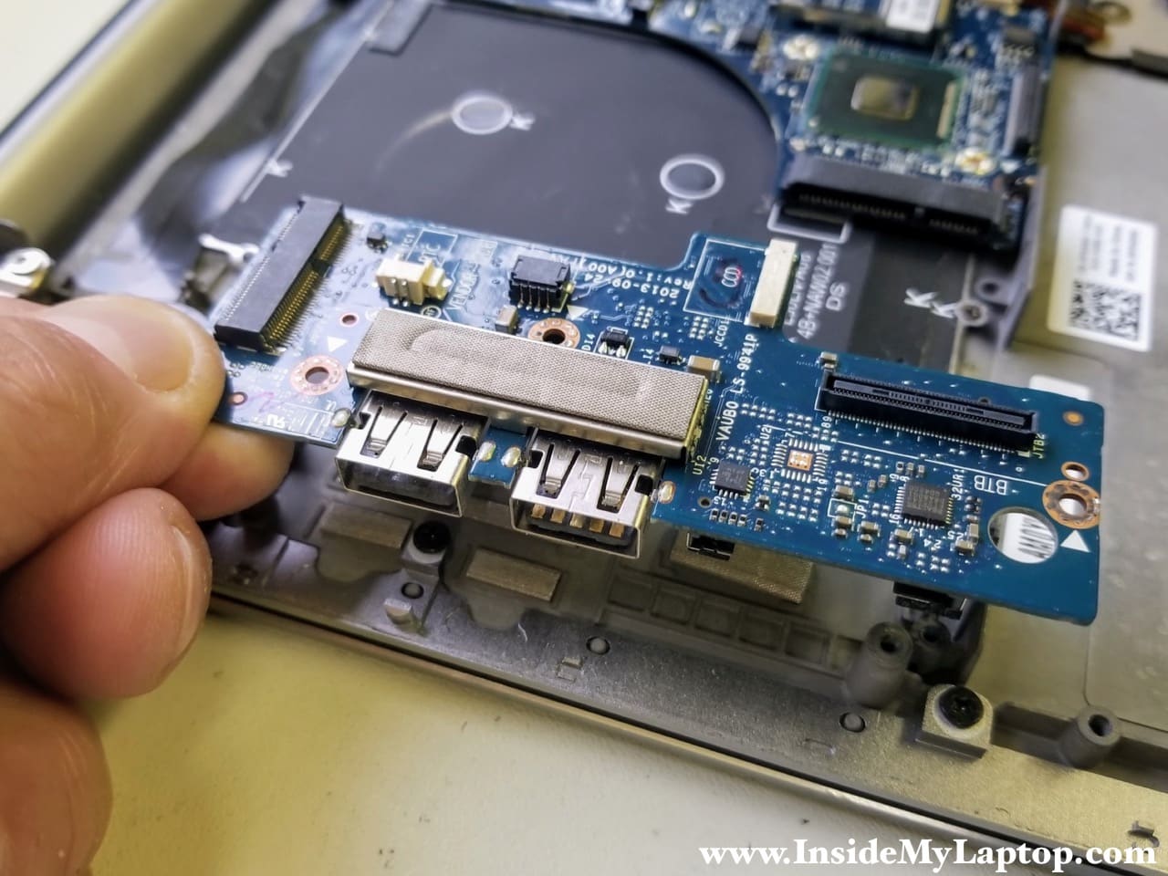 Loosen up two screws on the top (yellow circles). They will remain attached to the motherboard.