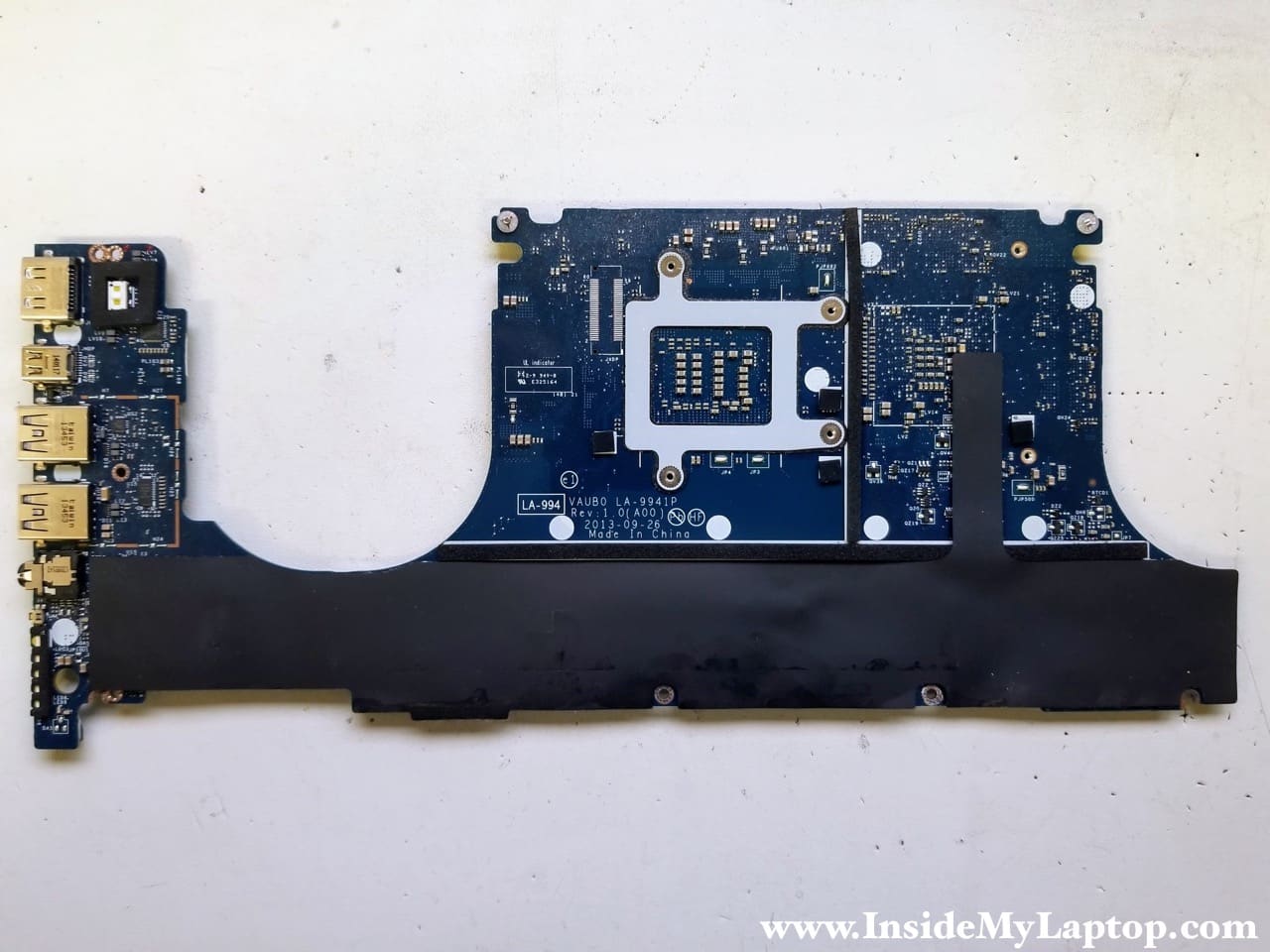 Lift up and remove the heatsink. Now you can replace thermal grease on the CPU and GPU chips if necessary.